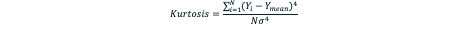 where μ4 is the fourth central moment and σ is the standard deviation. For univariate time series containing Ν samples, kurtosis is given by the following formula: