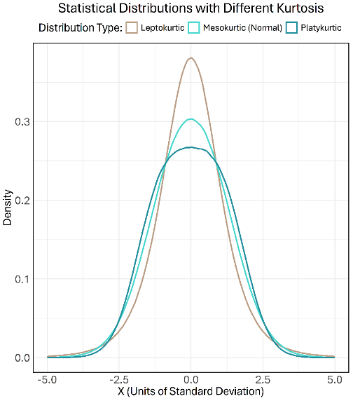 The kurtosis of a statistical distribution can be classified into three main types (illustrated in Fig 1 below):