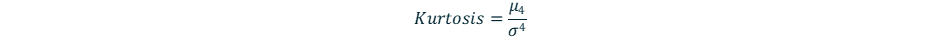 Since we are primarily concerned with heavy tails, statistical kurtosis is a useful tool. Despite sounding like a mild throat infection, kurtosis is actually considerably more useful as it seeks to quantify the shape of a probability distribution. It is employed in statistical analysis to measure the frequency and magnitude of outcomes residing inside the tails of the relevant distribution and is expressed using the mathematical formula: